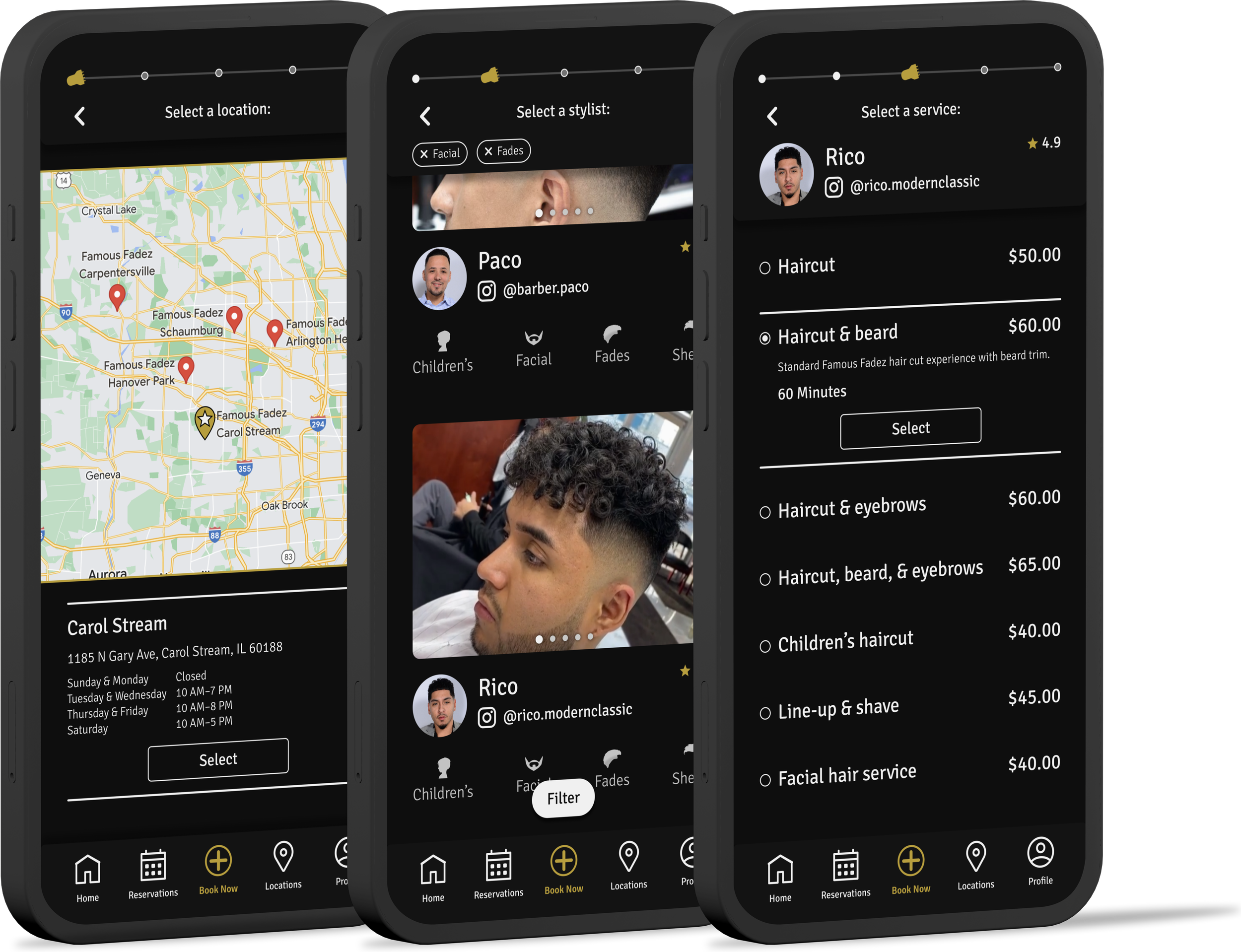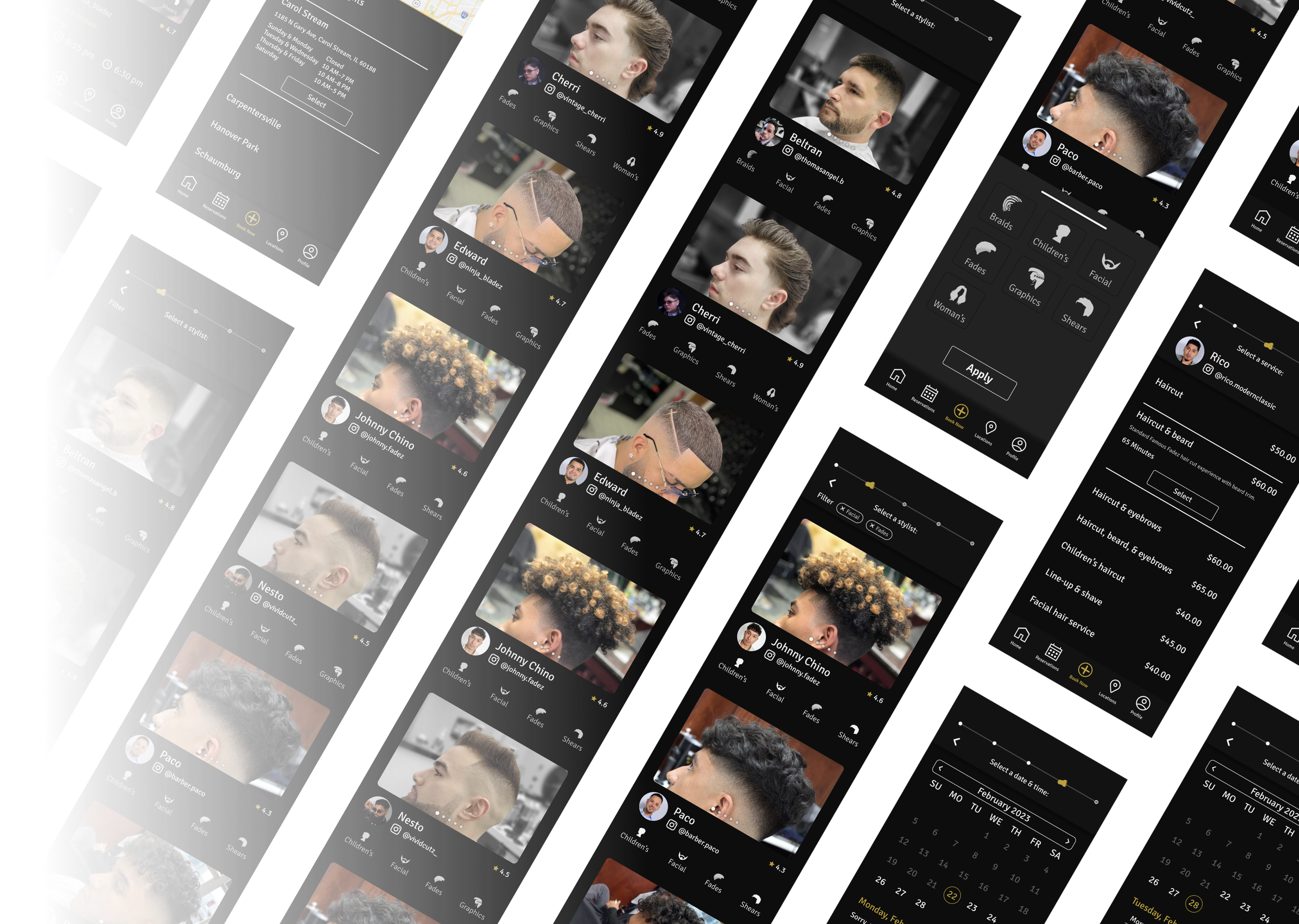 Famous Fadez has a lot of clients using their current app for booking their reservations. I need to create the new design while keeping the overall feel and flow of their current product. This keeps pain points to a minimum while long-time users transition to the new design.
