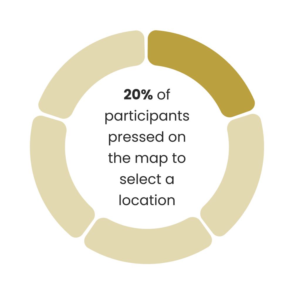 When participants were tasked with selecting a location, most of them selected the text beneath the map. 20% of participants tried to select the location on the map instead.