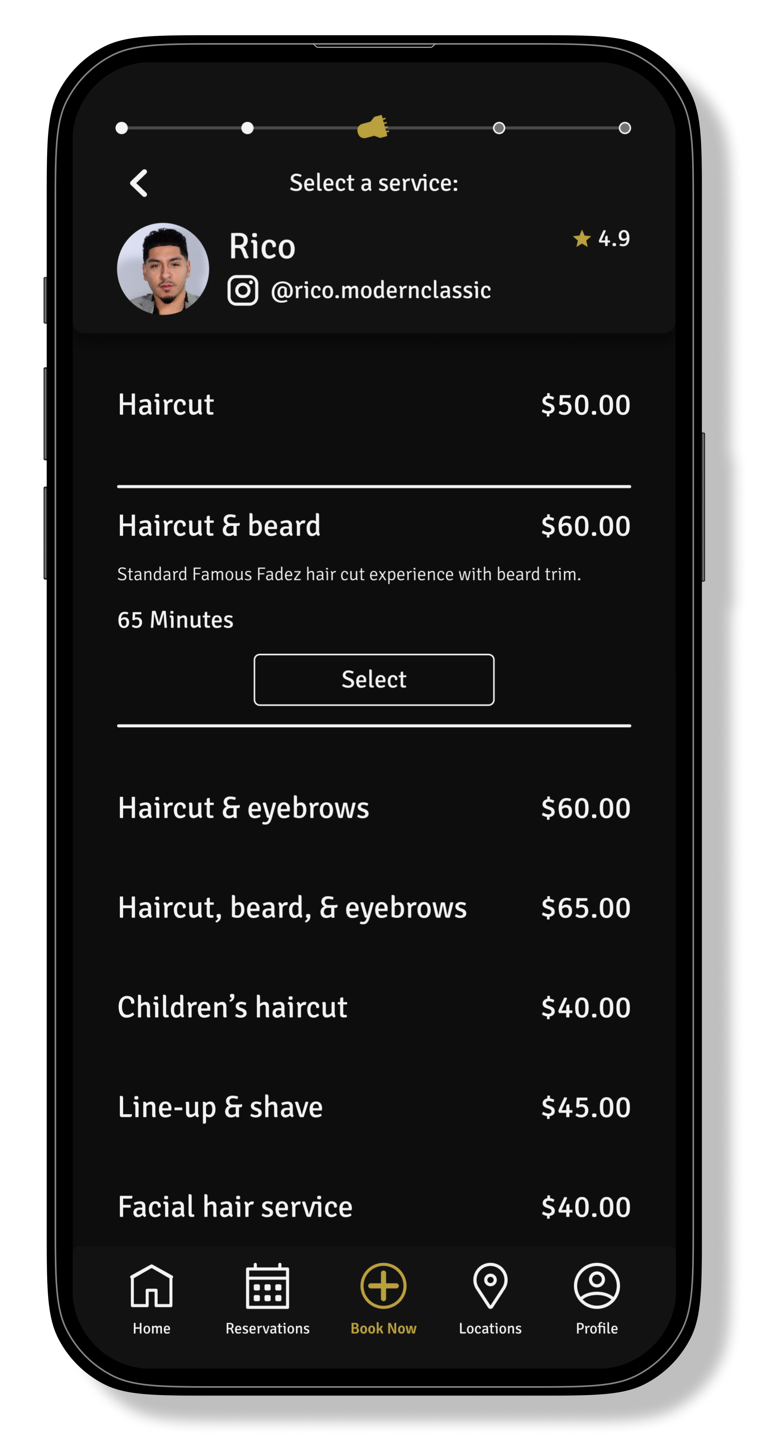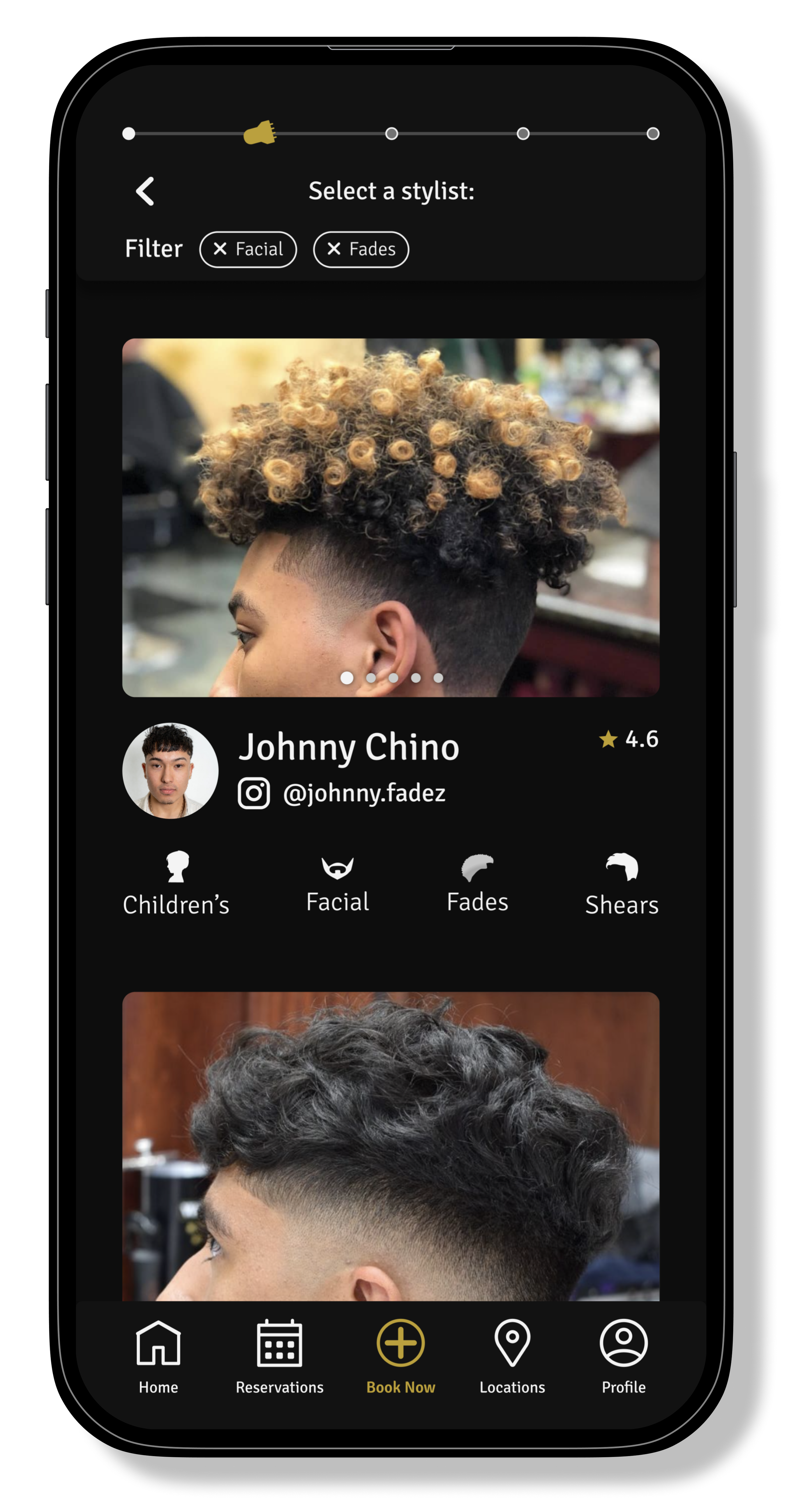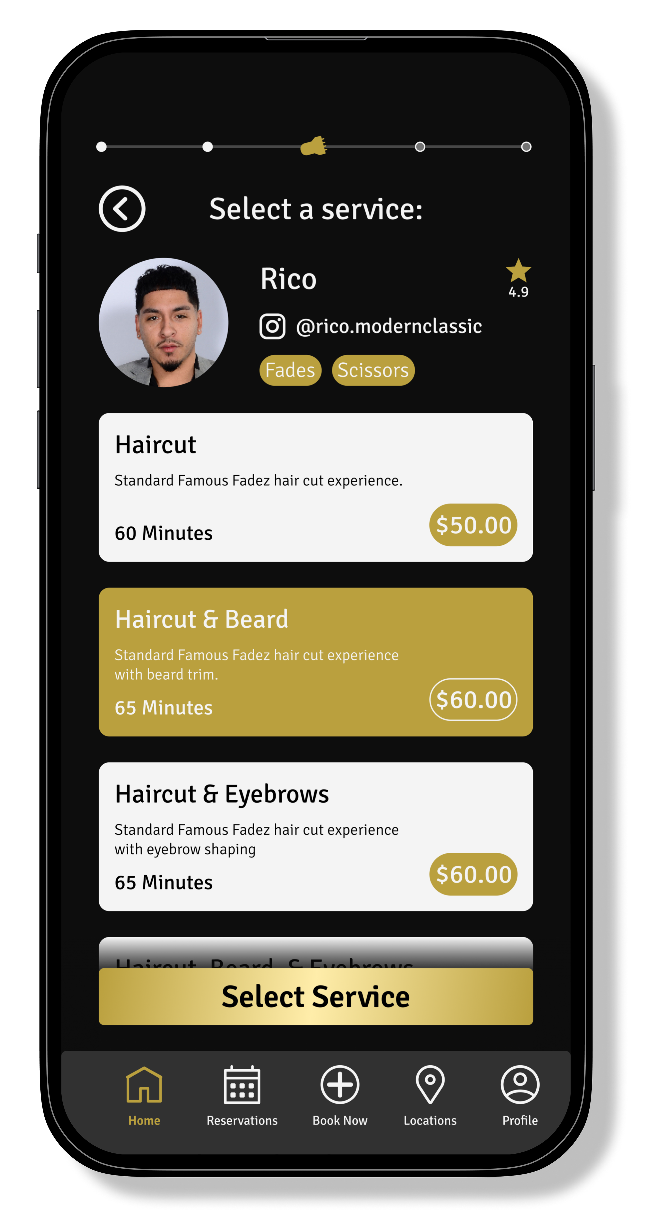 The barber cards have received a full redesign. They now highlight featured photos that the barber chooses to showcase. Their specialties have also been complimented with icons to assist in relaying the information. The barber’s Instagrams are now immediately on display.