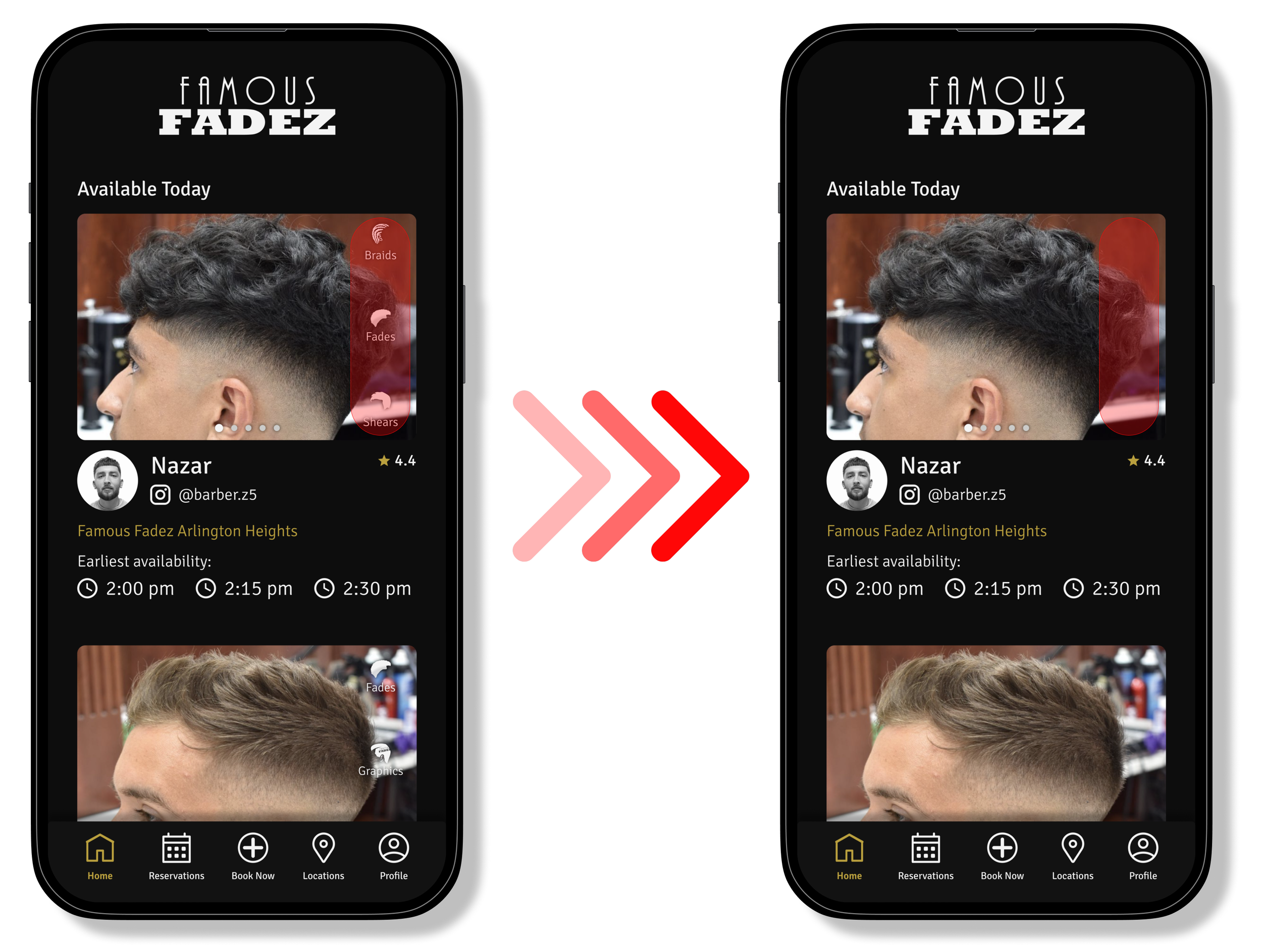 Famous Fadez currently has an app but it was created in 2016. The app has only been updated for their new locations and new barbers but has not been through any major changes. The design feels outdated and lacks crucial information that new users may need to make an informed barber selection.