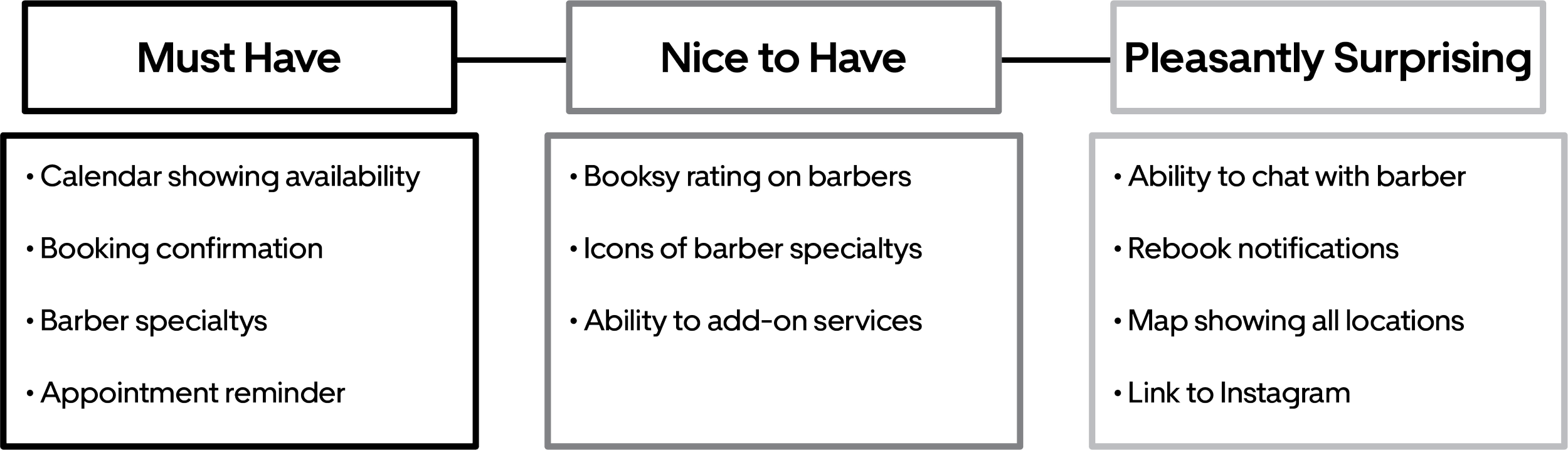 I wanted to understand the process that people took to book a haircut from their current barbers. There were a lot of different variations, but all interview participants used an app of some kind to book their current appointments. This information would benefit me during the interview since I would be designing on the same playing field.