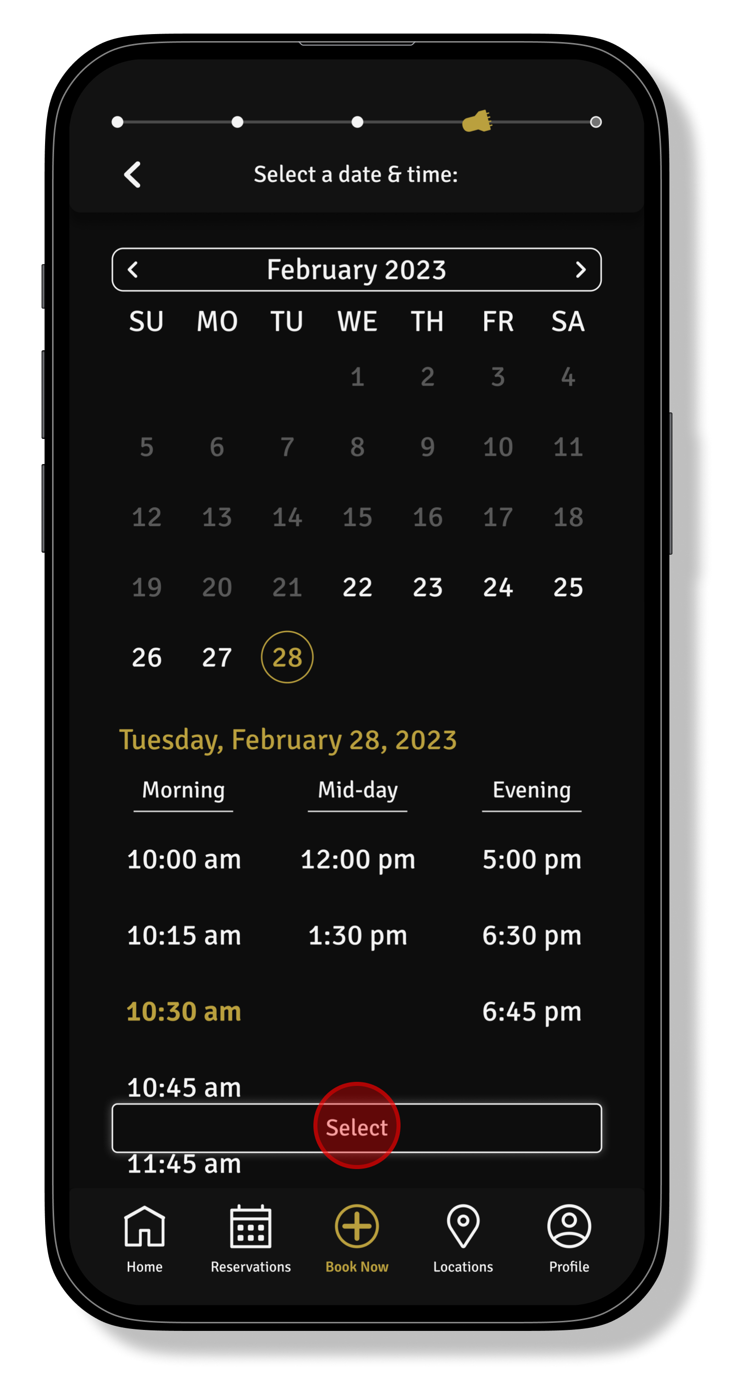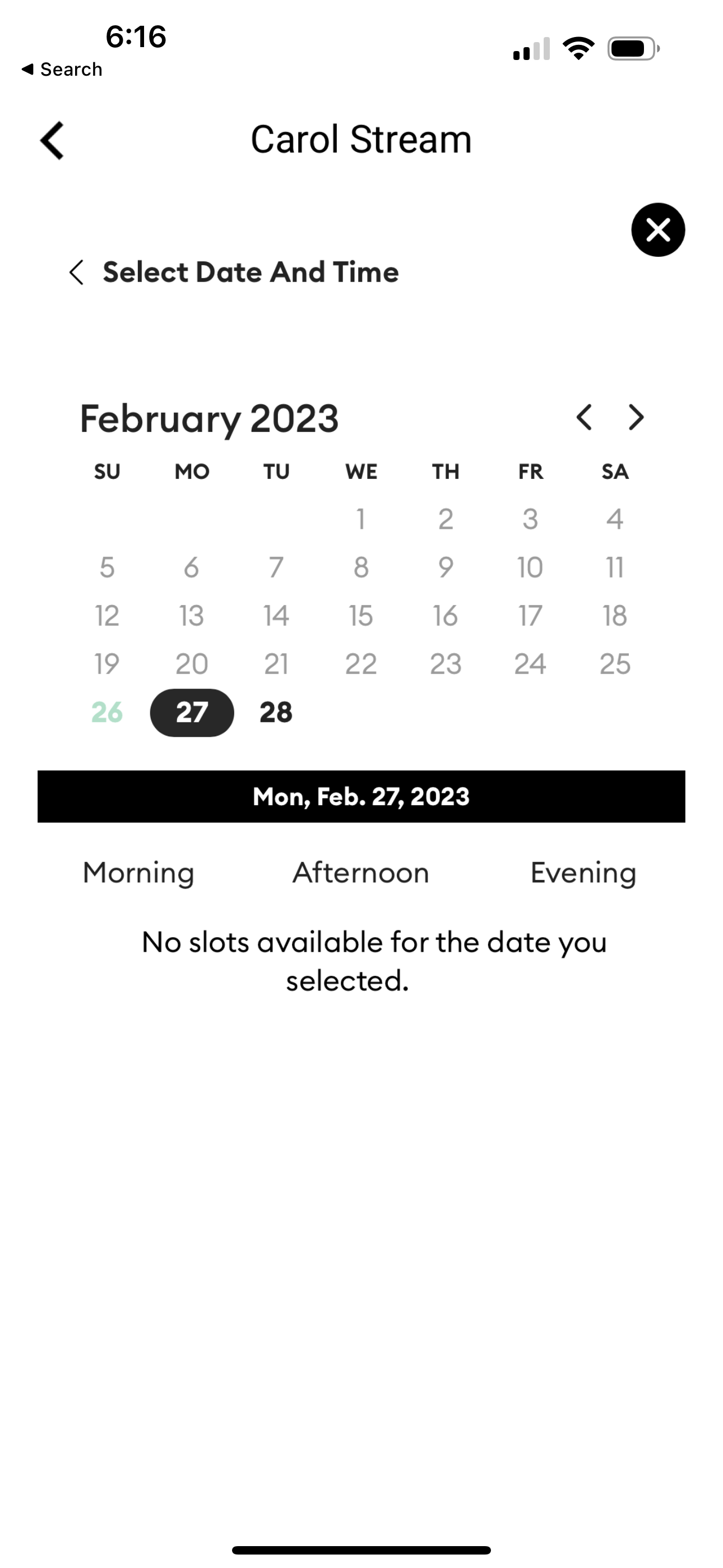 Starting the process for booking a new appointment