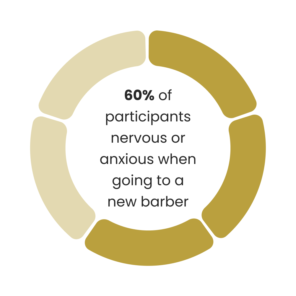 When asked how the participants felt when visiting a new barber, 60% stated that they feel nervous. I need to be able to add things into my design to try and minimize this for potential new users. I want to be able to reassure the users that they are making an informed decision with their selection.