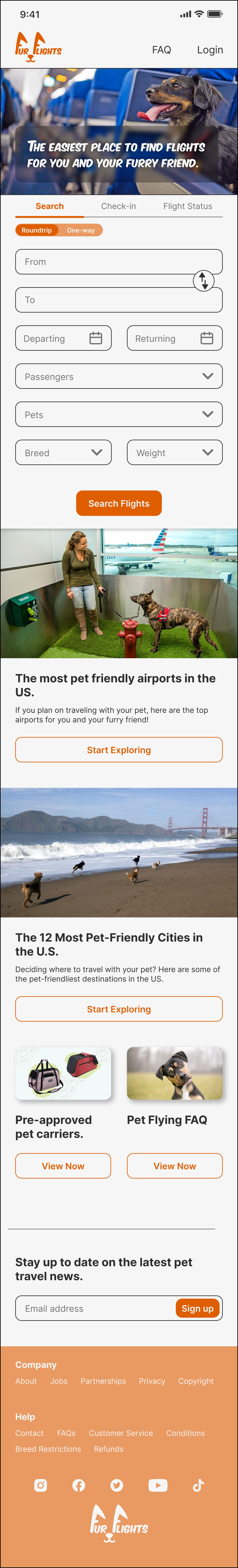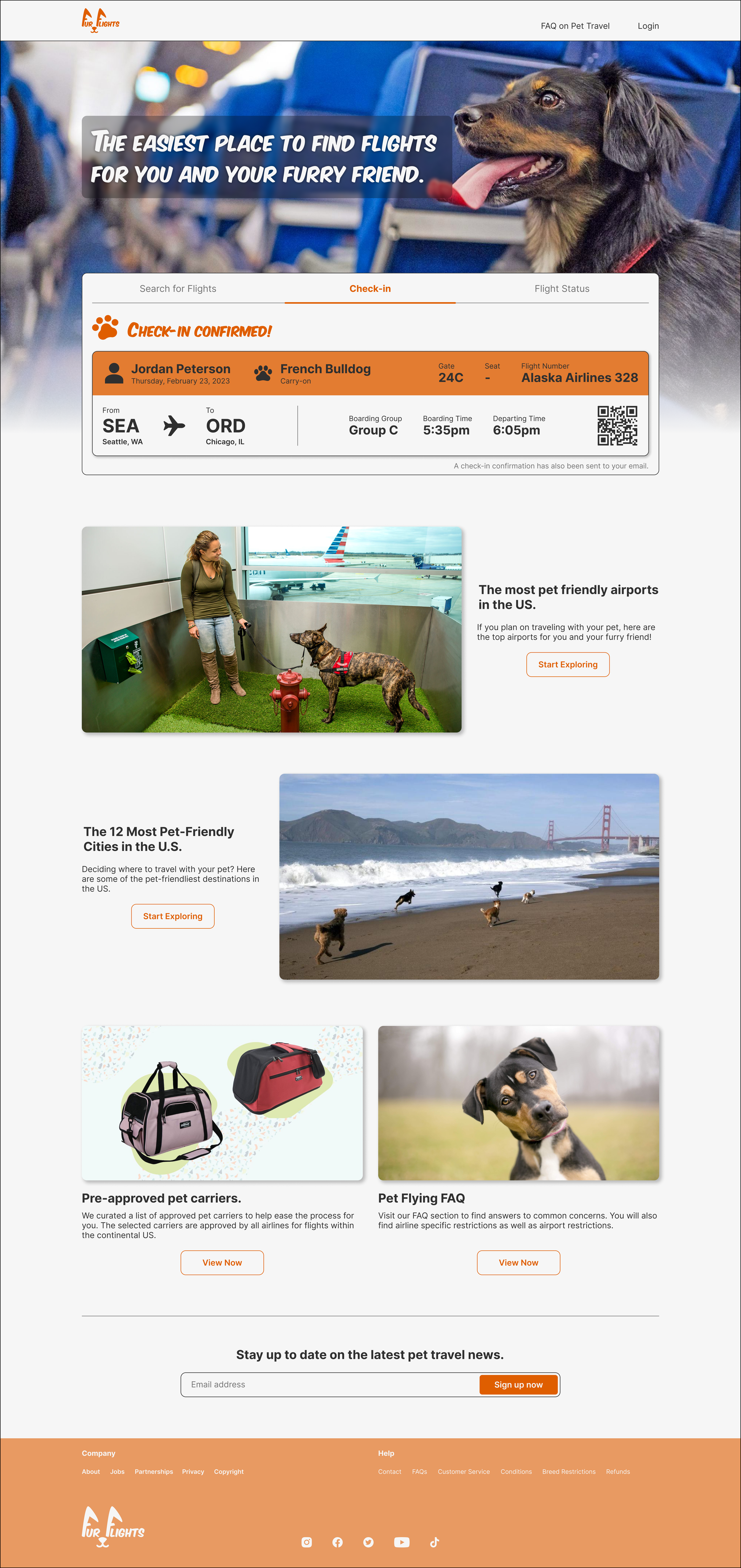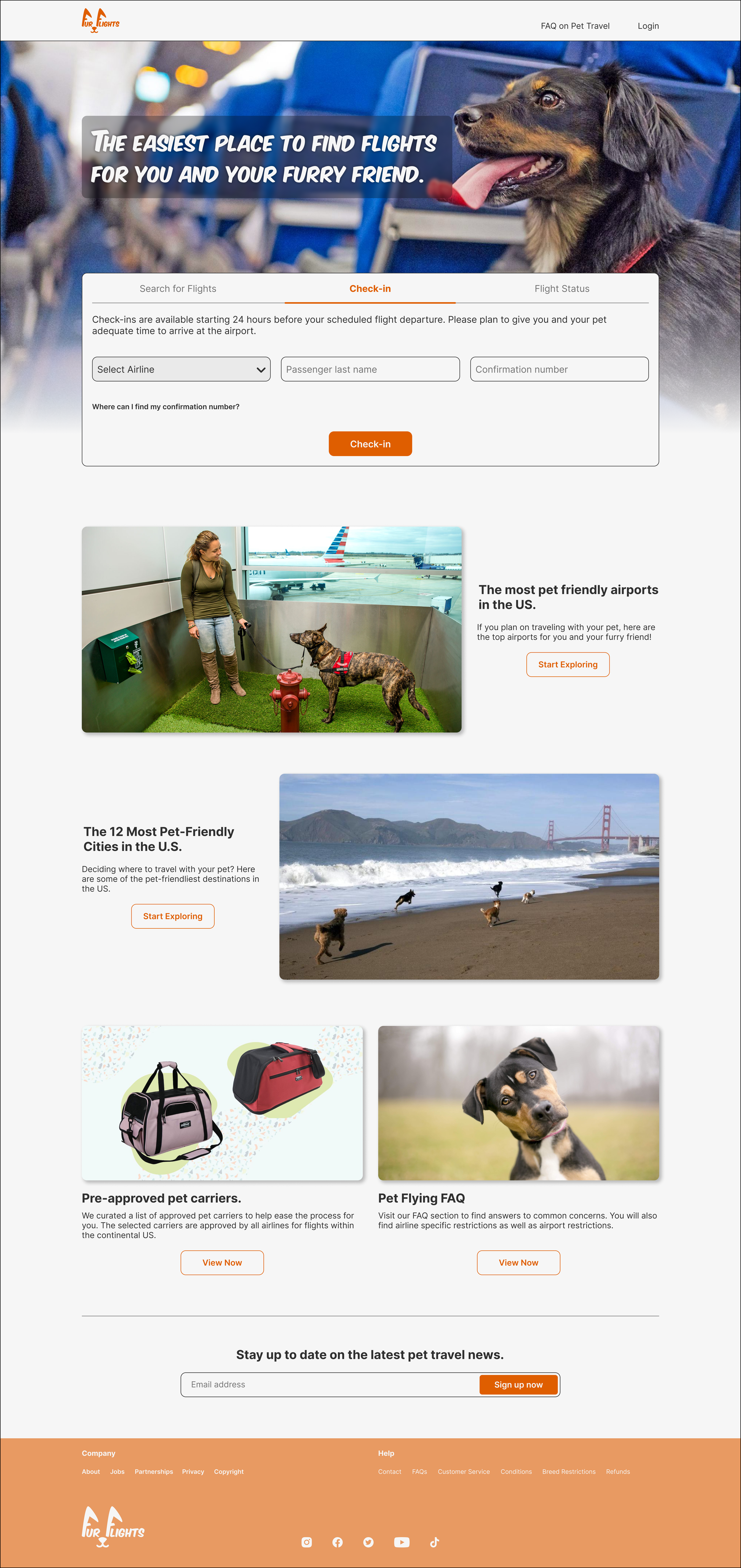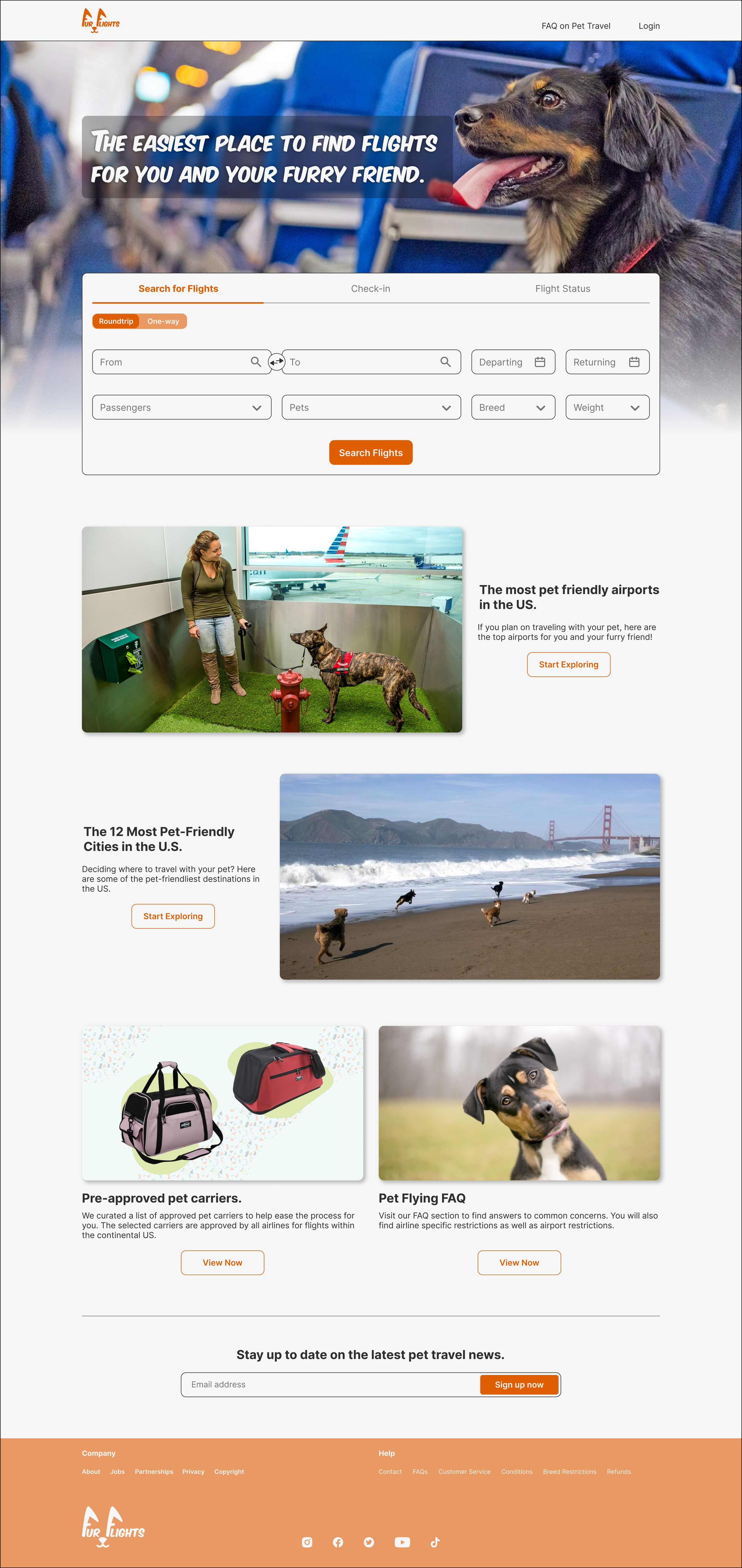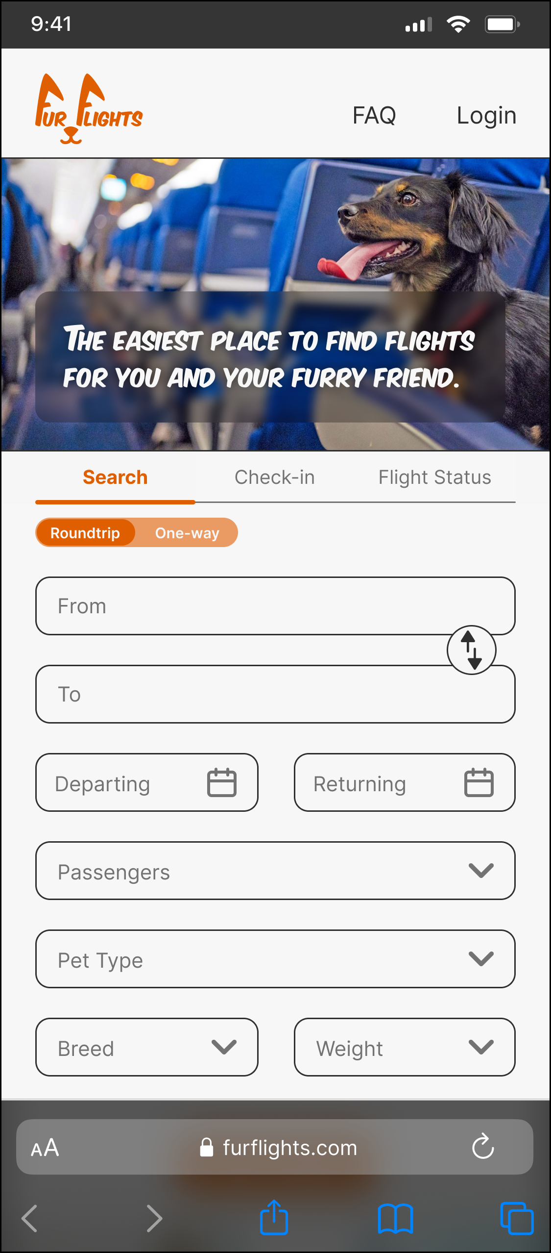 They only allow flight booking at this time as they work on expanding their platform and connections. I have been tasked to create a responsive website for different screen sizes. Fur Flights is waiting for more growth before they decide to allocate more of its budget to create a dedicated application.