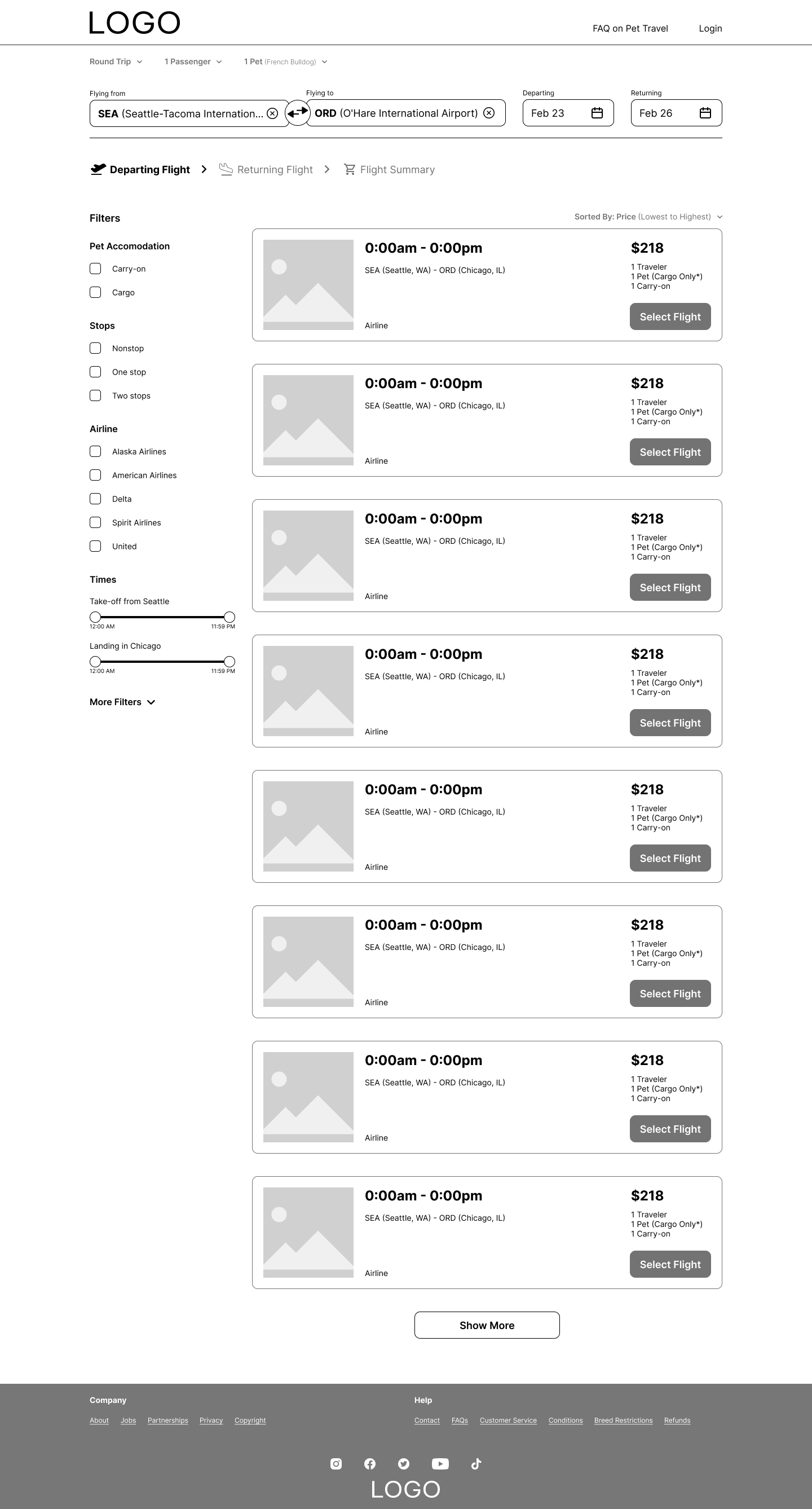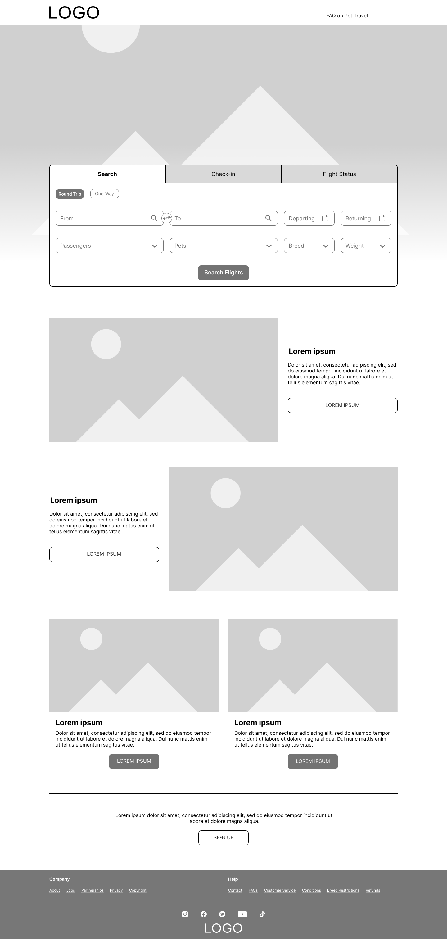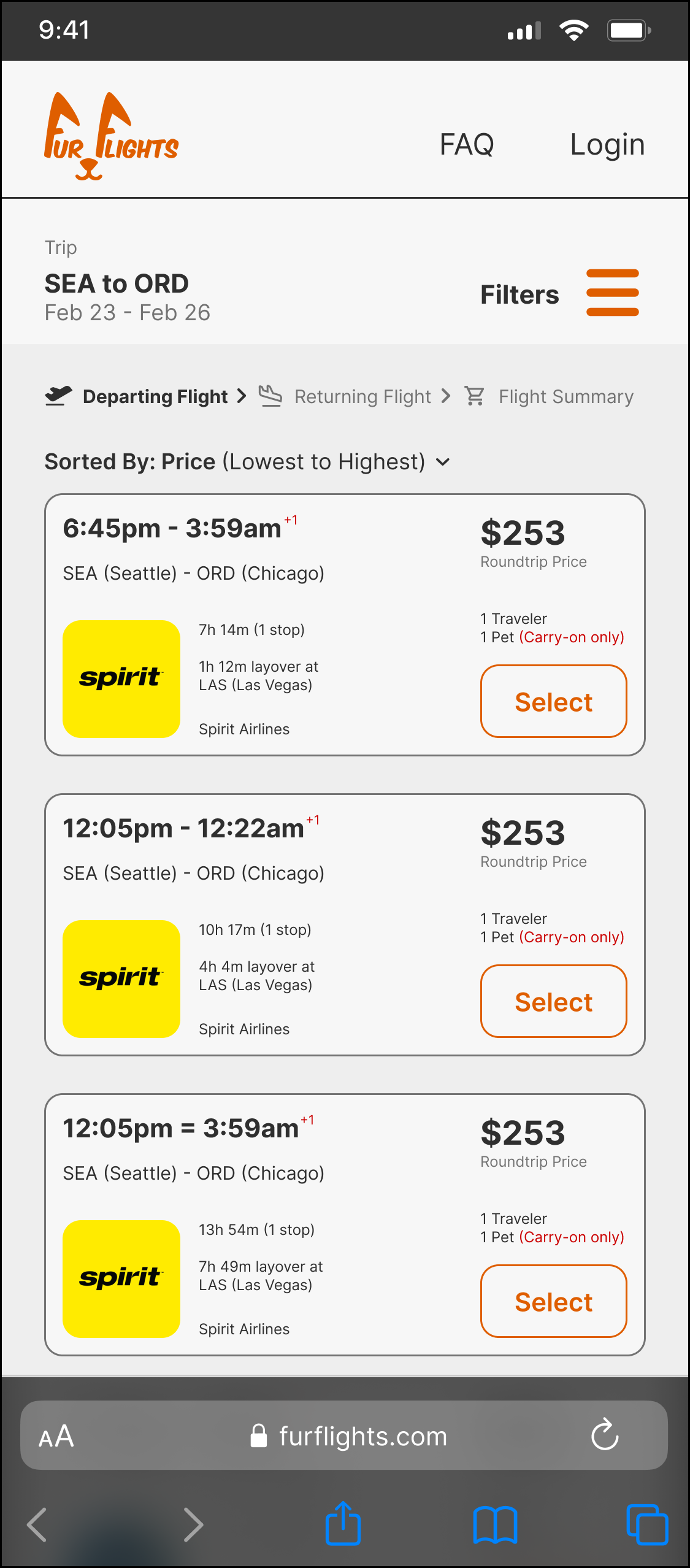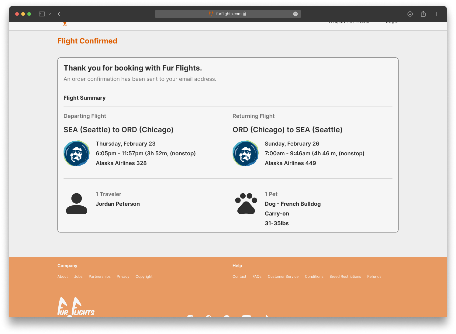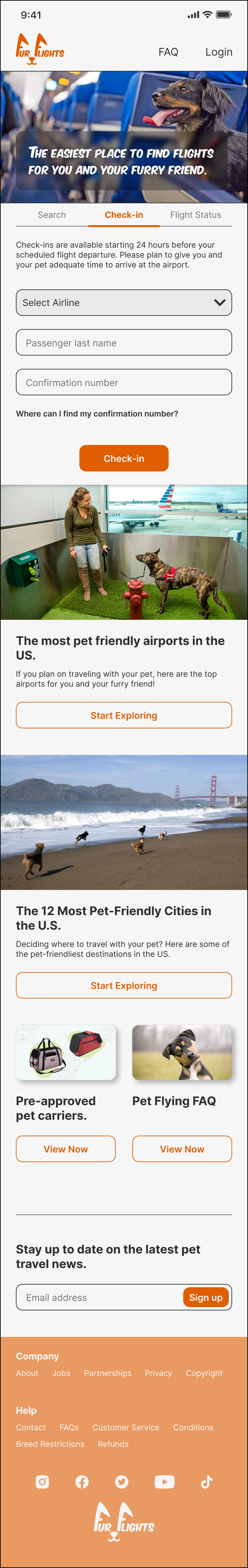 They only allow flight booking at this time as they work on expanding their platform and connections. I have been tasked to create a responsive website for different screen sizes. Fur Flights is waiting for more growth before they decide to allocate more of its budget to create a dedicated application.