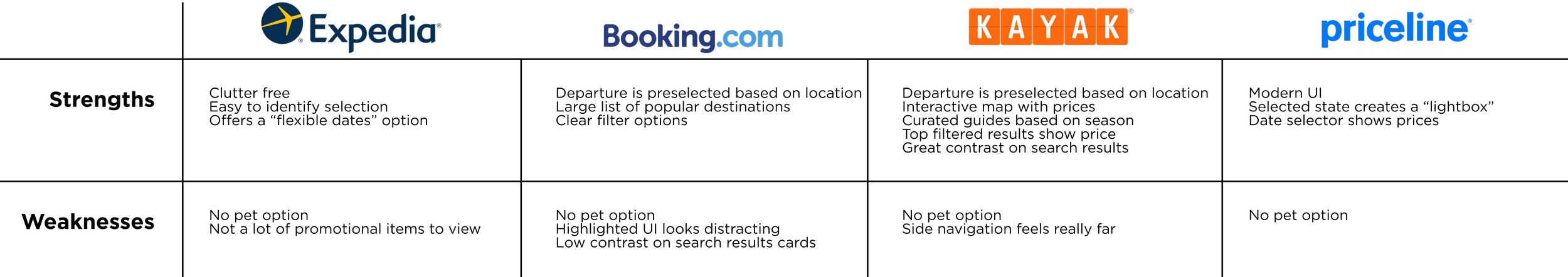 I started my research journey by comparing Fur Flights with direct competitors, as well as indirect competitors.