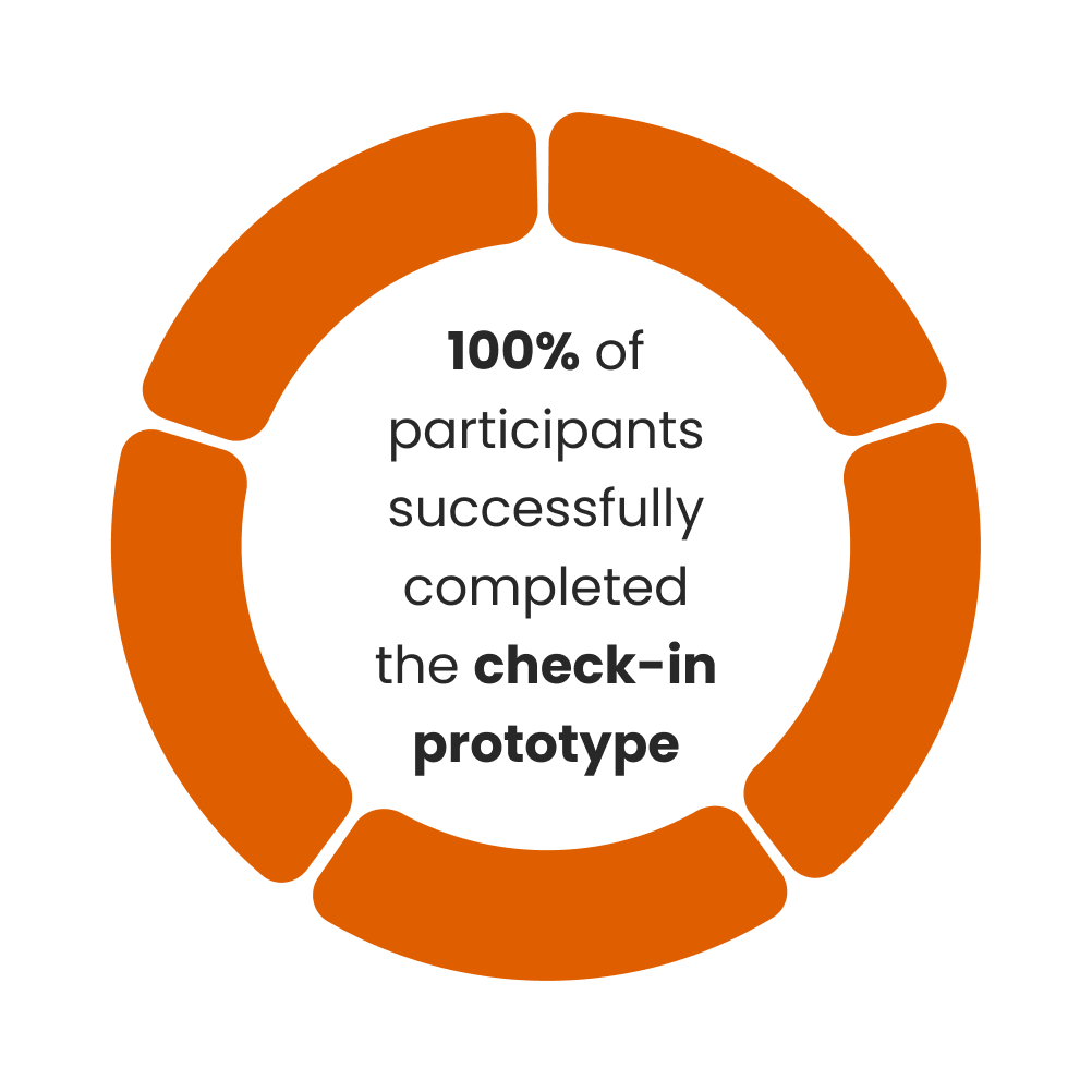 All participants successfully completed the check-in test without any issues. All participants stated that the prototype was very straightforward.