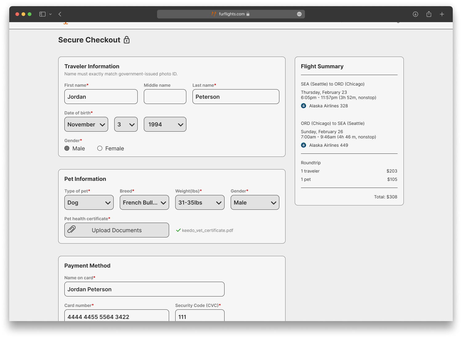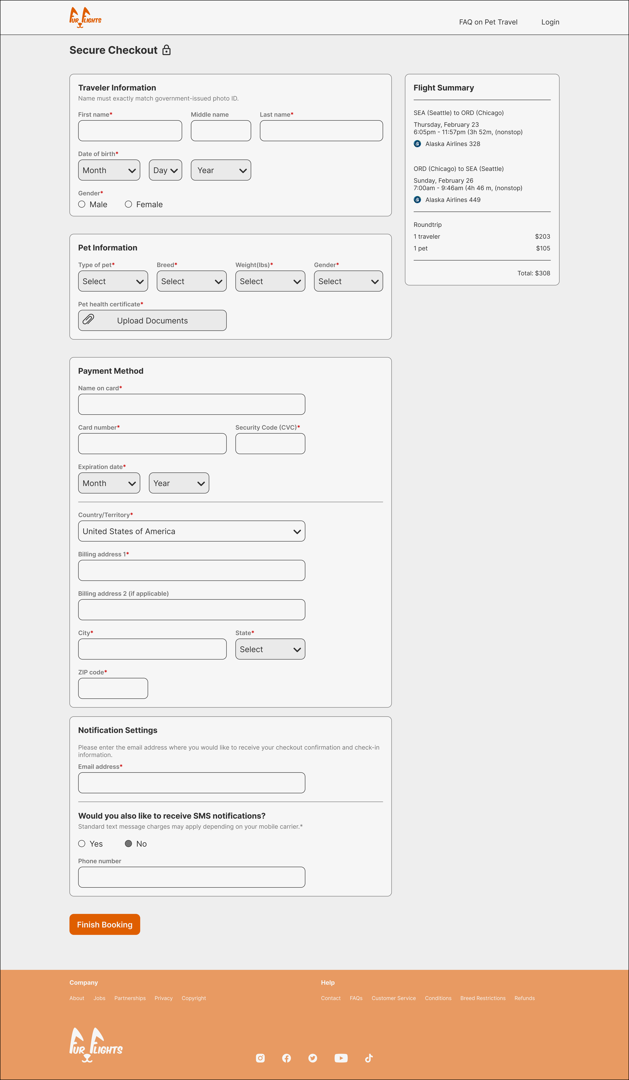 My main goals for this project are to understand how to make flight booking with your pet as easy as possible while also creating a responsive design for different devices.