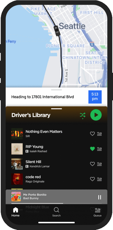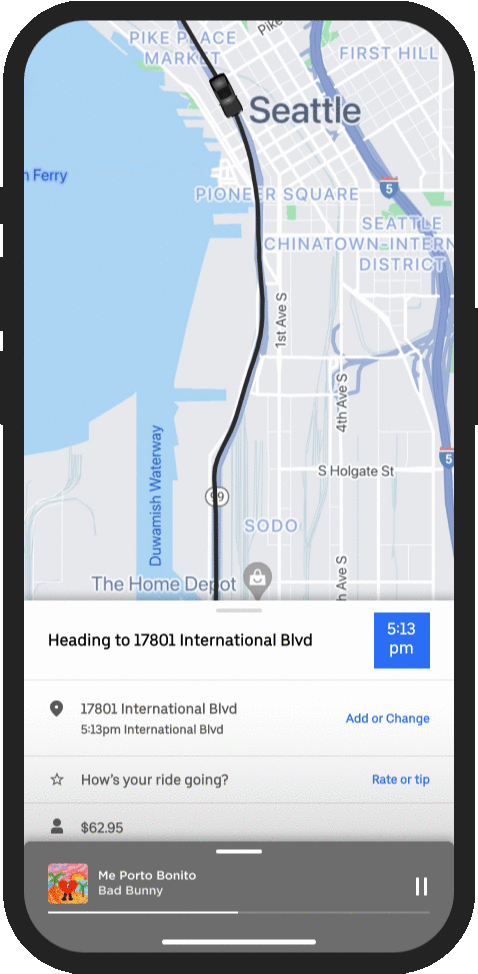 Uber +Music is a new way for users to experience ride-sharing. Spotify, an audio streaming service, distributed 10,000 of their Car Things to eligible Uber drivers. The drivers had to exceed certain rating criteria as well as have an eligible vehicle. I was tasked with adding a Spotify overlay into the existing Uber app for users who wanted to use the service.