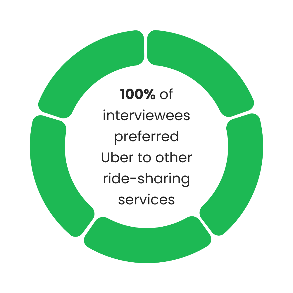The interview script had no reference for what ride-share platform this feature would be added to. When asked what ride-share platform the interviewee preferred, all of them responded with Uber. This helped me further believe that Uber would be the right candidate to introduce this service to.