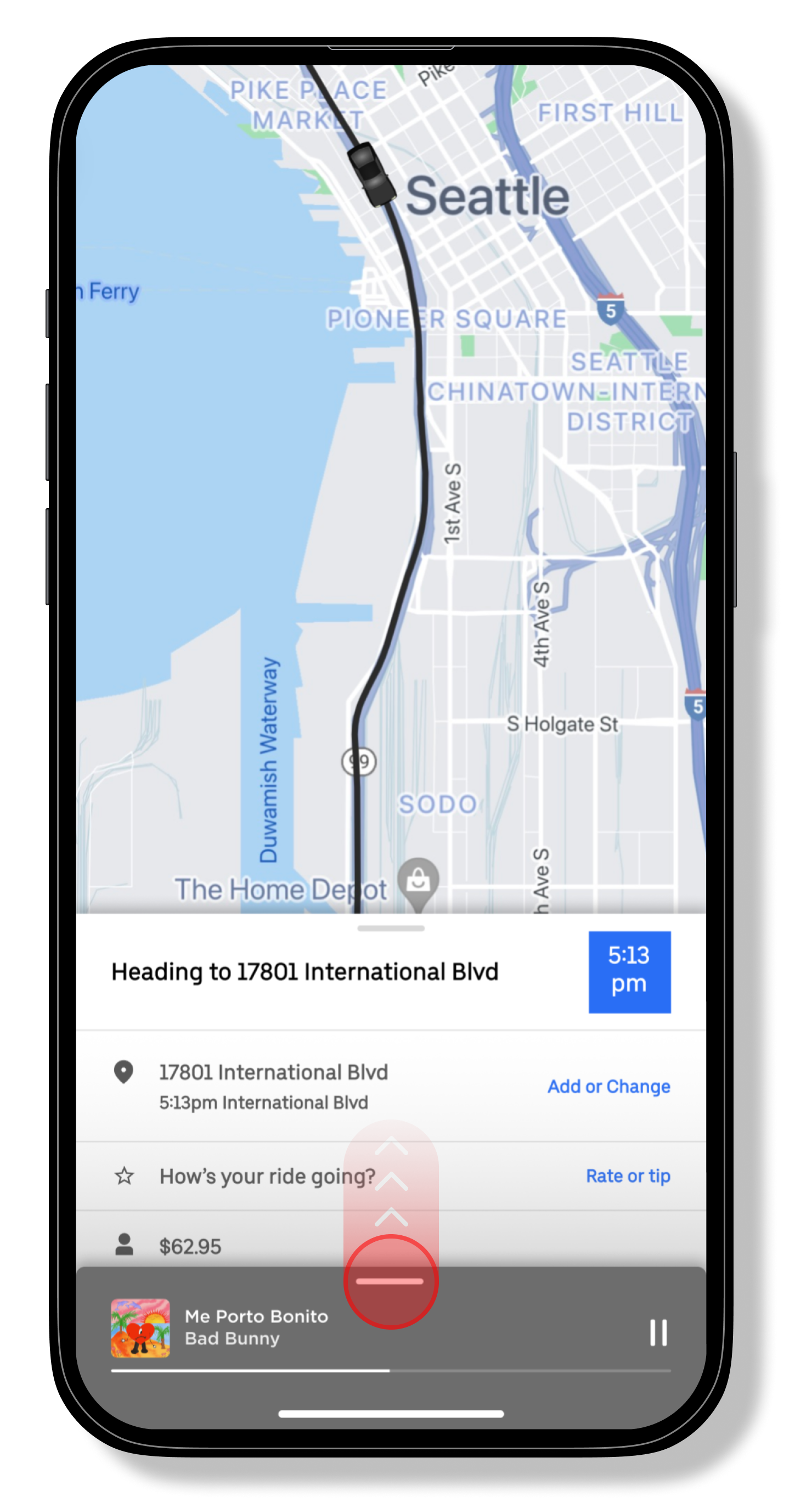 One participant had trouble opening the Spotify overlay. The original design only had a bar near the top of the “now playing” chute. This bar was meant to indicate that it could be interacted with. It took a few different actions, but eventually, the participant figured it out. They even tried tapping the overlay to expand it.